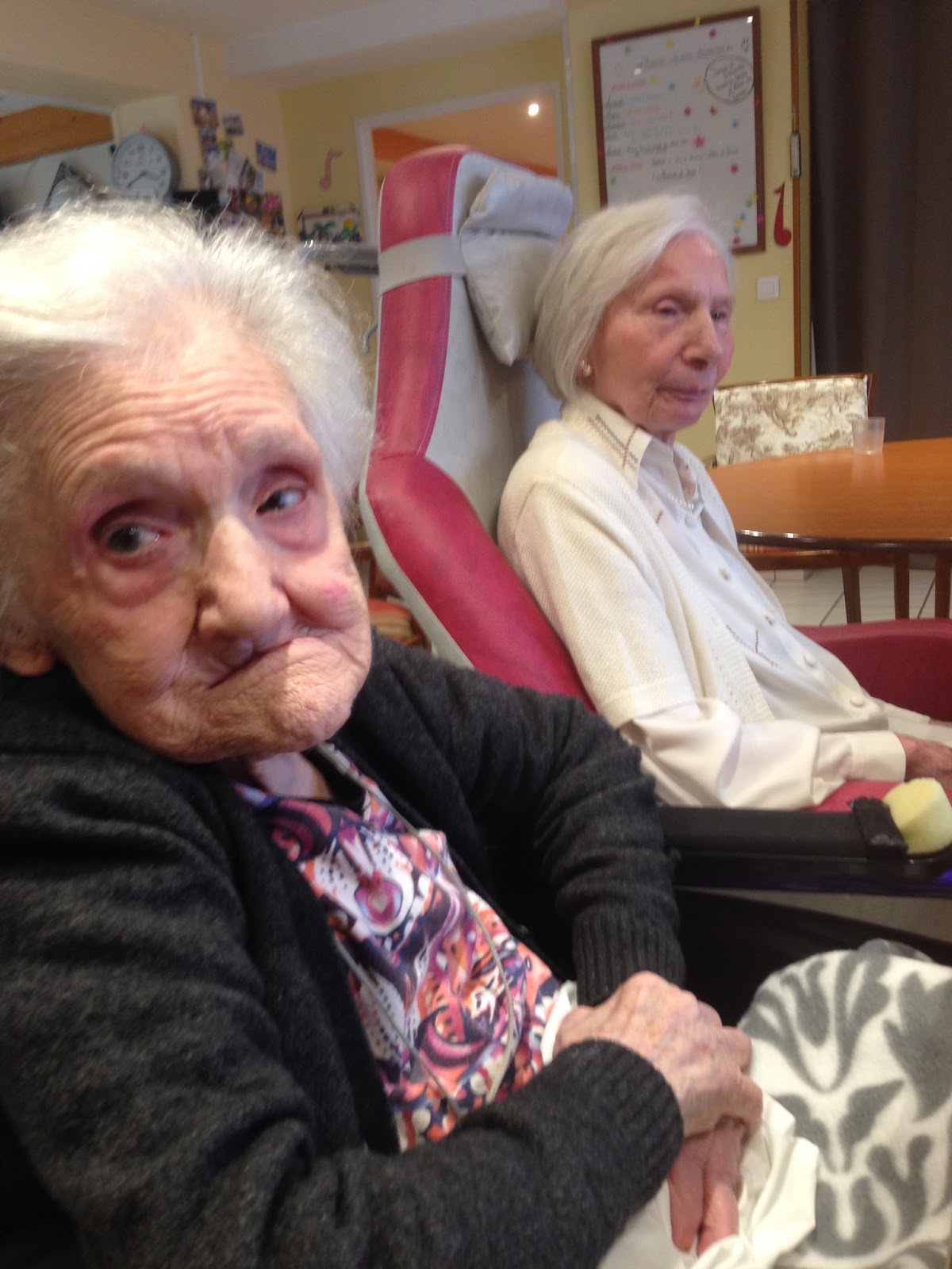 Une nouvelle résidente, Madeleine, 100 ans, mais qui est loin de les paraître, est venue se greffer à notre petit groupe de chanteurs, et a fort bien participé pour une première. Bravo et merci Madeleine.