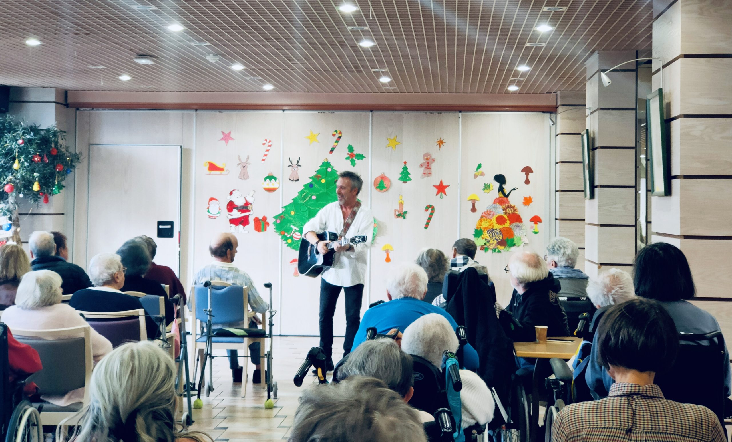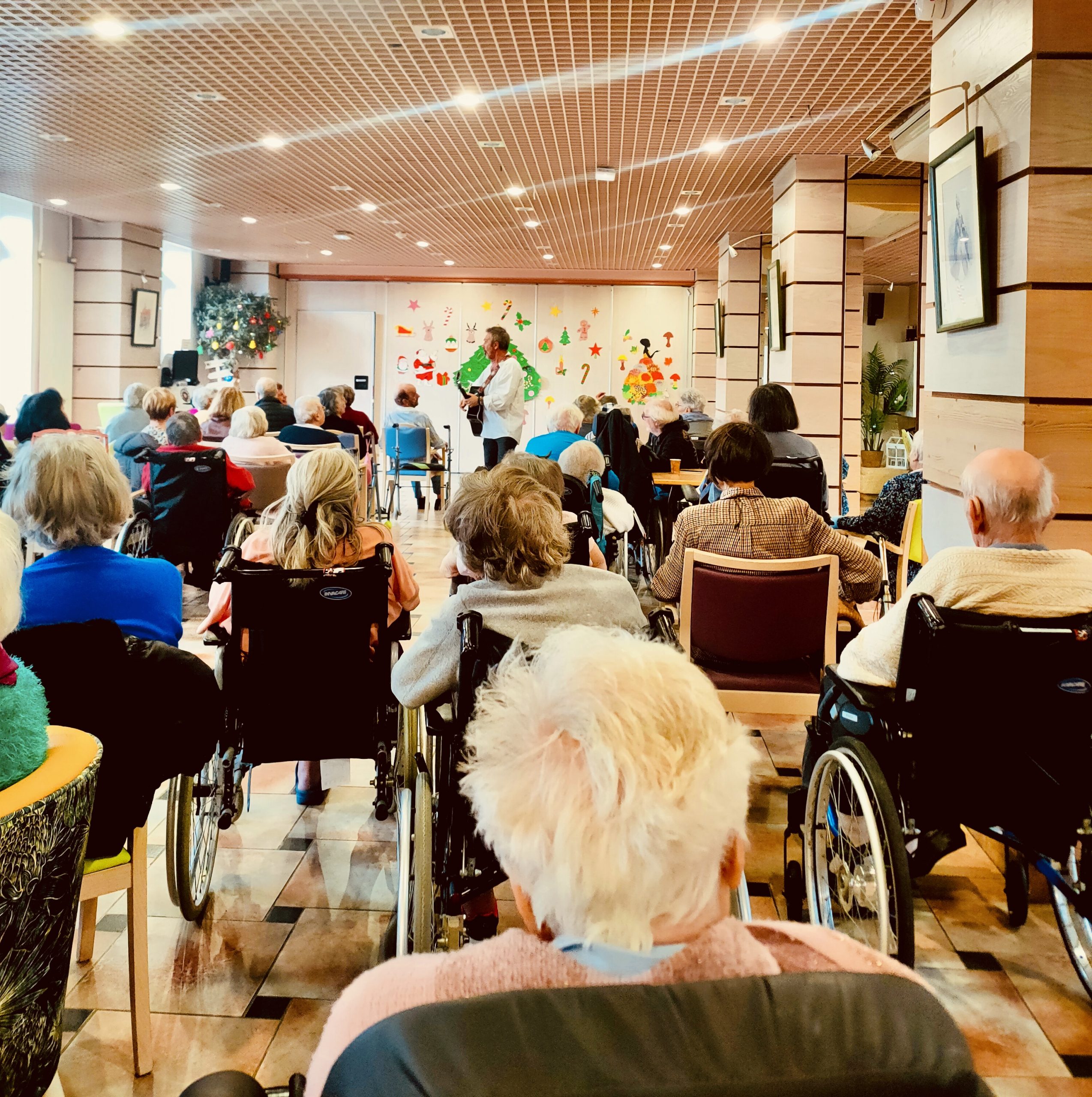 Je suis arrivé à 14h30, ce qui m’a laissé le temps de prendre un café et d’accueillir les résidents et leurs proches dans la grande salle du rez-de-chaussée.