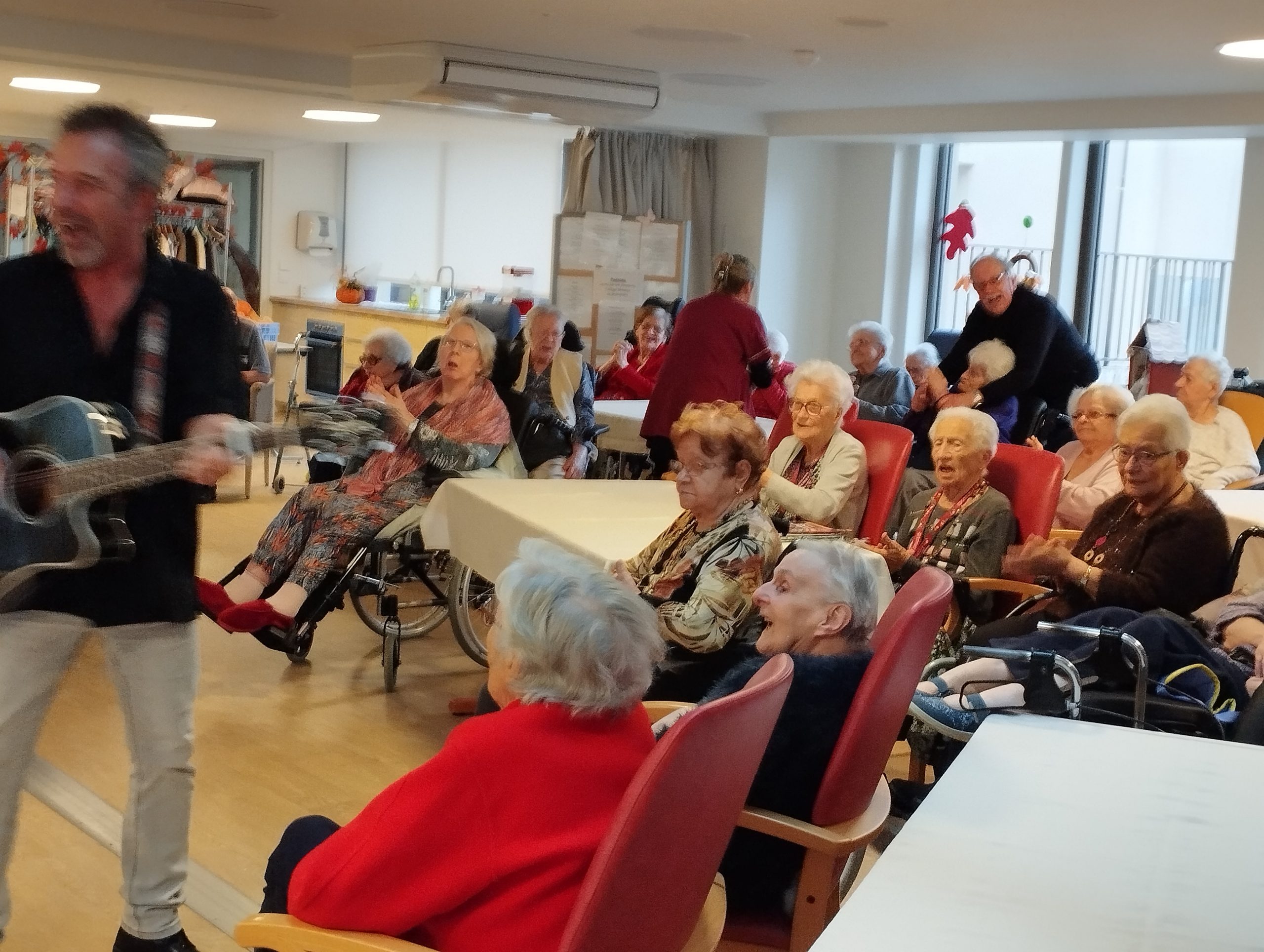 Nous avons chanté haut et fort et un peu de tout ce qui passait par nos têtes ! Des chansons dynamiques et joyeuses des années 60,70 et quelques tubes incontournables des années 50 comme ceux d’ Edith Piaf, indémodables… même les jeunes soignantes connaissent « je ne regrette rien » , « la vie en rose » ou « mon manège à moi ».