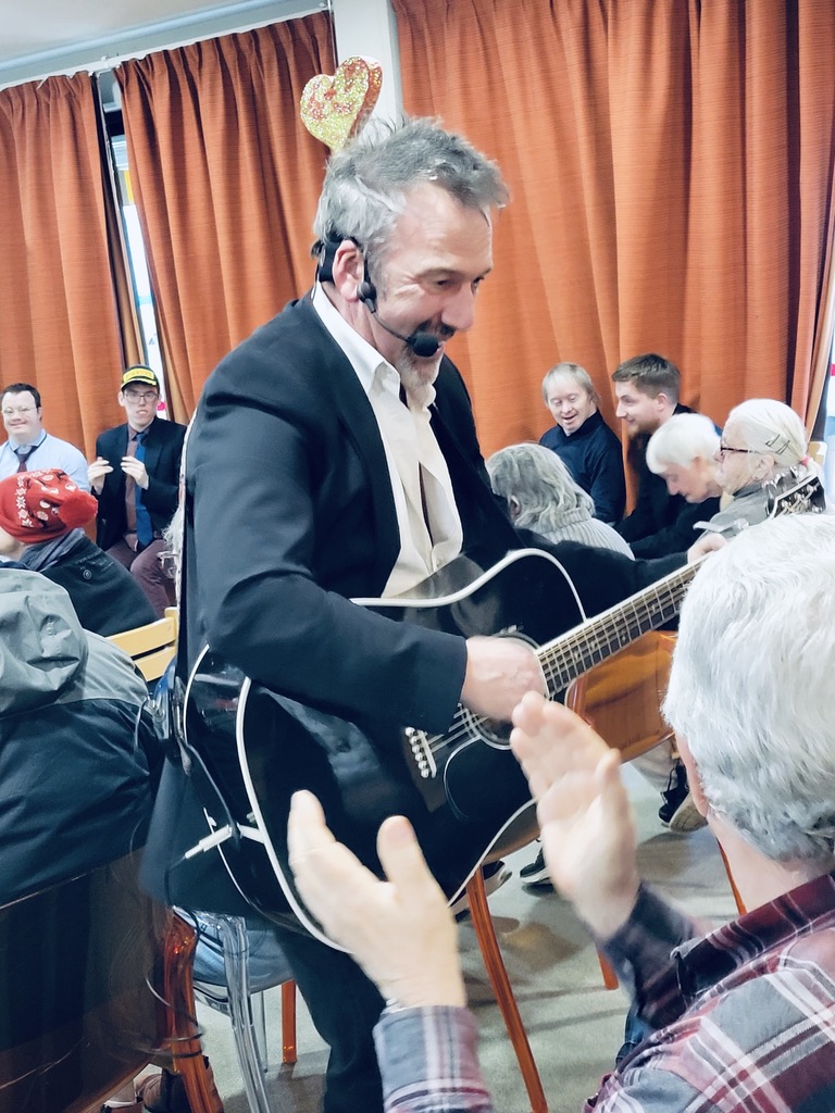 Je me suis frayé un chemin au milieu des résidents car j’aime aller chanter devant chaque personne. Comme ça même ceux du fond sont au premier rang.