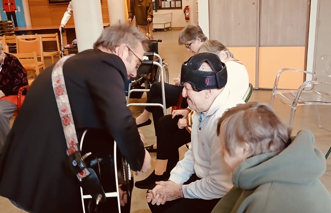 C’est à l’initiative de Moussa, magnifique animateur de ce FAM faisant partie de l’association « les jours heureux » que je suis venu, guitare à la main, chanter deux ou trois titres avec mes amis résidents. Il organisait une fête exceptionnelle pour célébrer les 20 ans de cette loi.