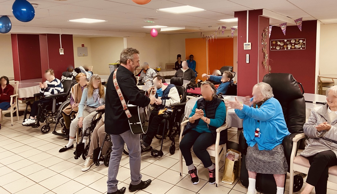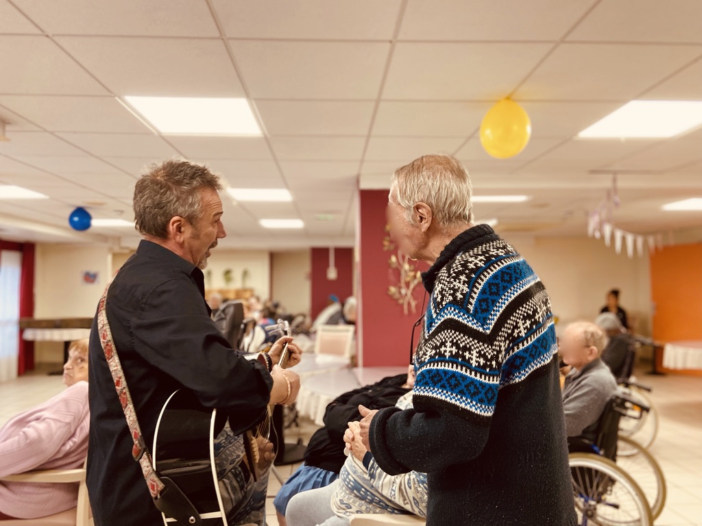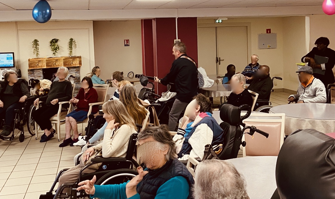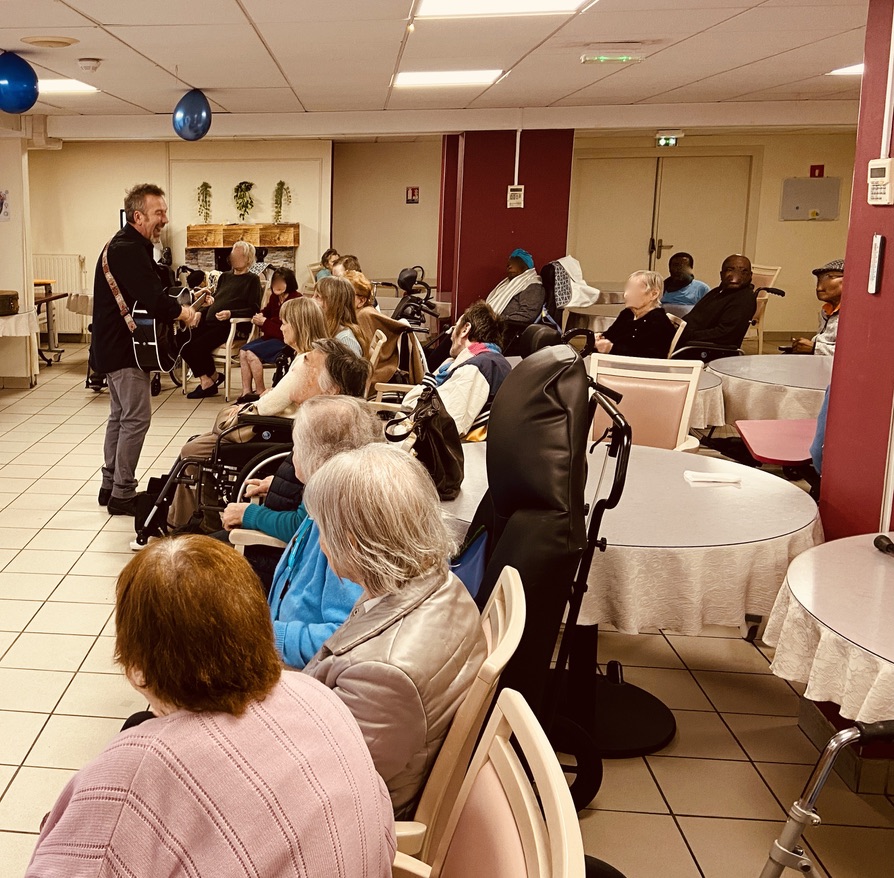 C’est Romain, l’animateur de cette maison qui m’avait contacté fin 2024. Romain m’avait rencontré il y a quelques années alors qu’il faisait son service civique dans un autre établissement labellisé « France Horizon » à Combs la ville (Les patios de l’Yerres). Depuis Romain a franchi les étapes qui l’ont mené à être animateur en Ehpad. C’est un jeune homme bien, plein d’empathie, à l’écoute. Sa priorité est « l’animation sociale ».