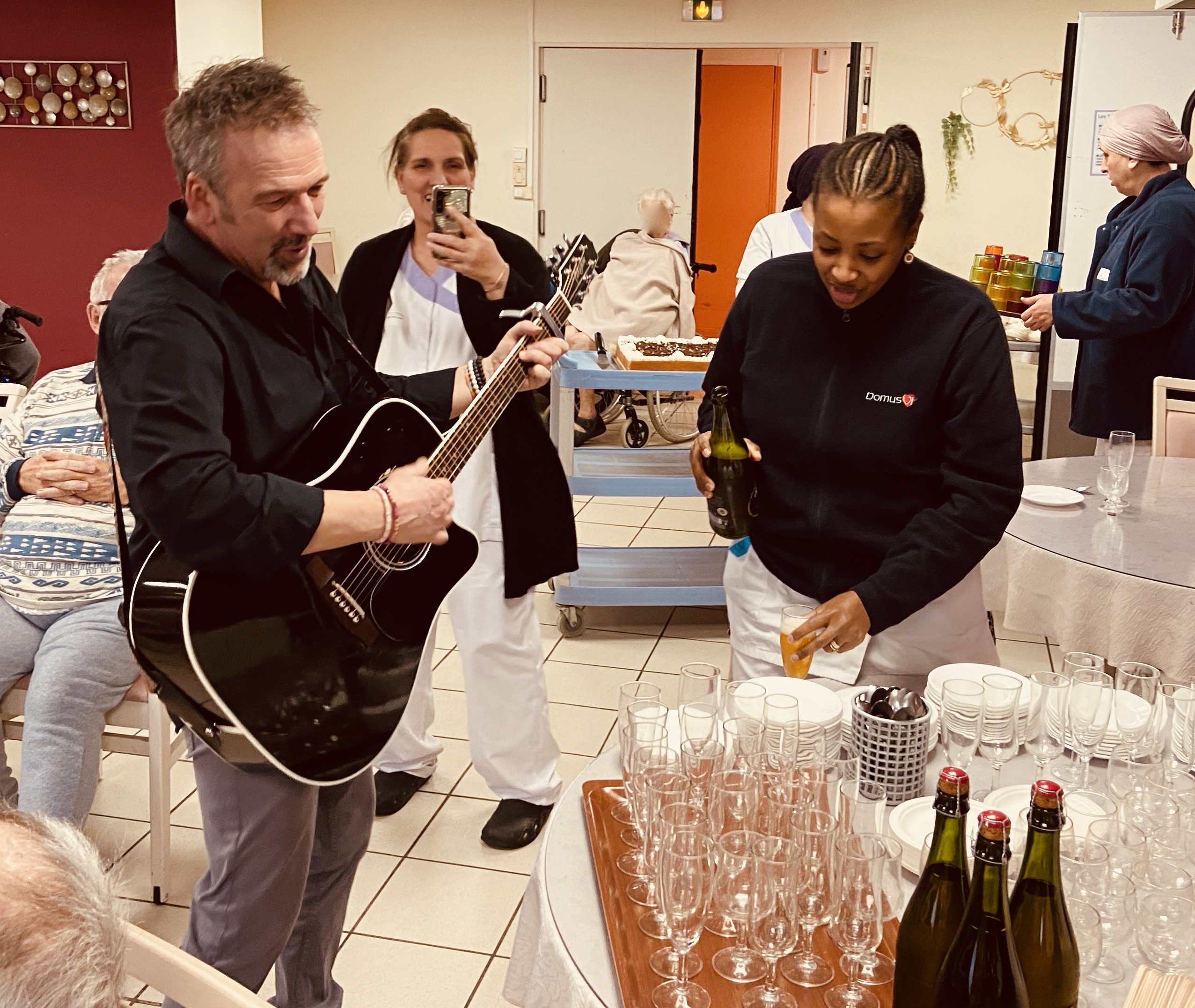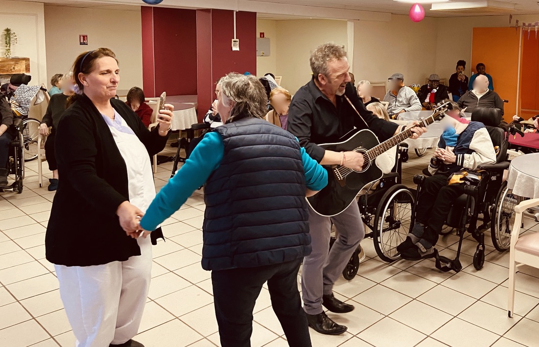 Catherine et Mitou se sont levées pour danser. Elles ont même fait partie des Clodettes du jour avec quelques soignantes et Nia qui semble être une super gouvernante, joyeuse, souriante, agréable et efficace. Bravo à toutes les courageuses danseuses.