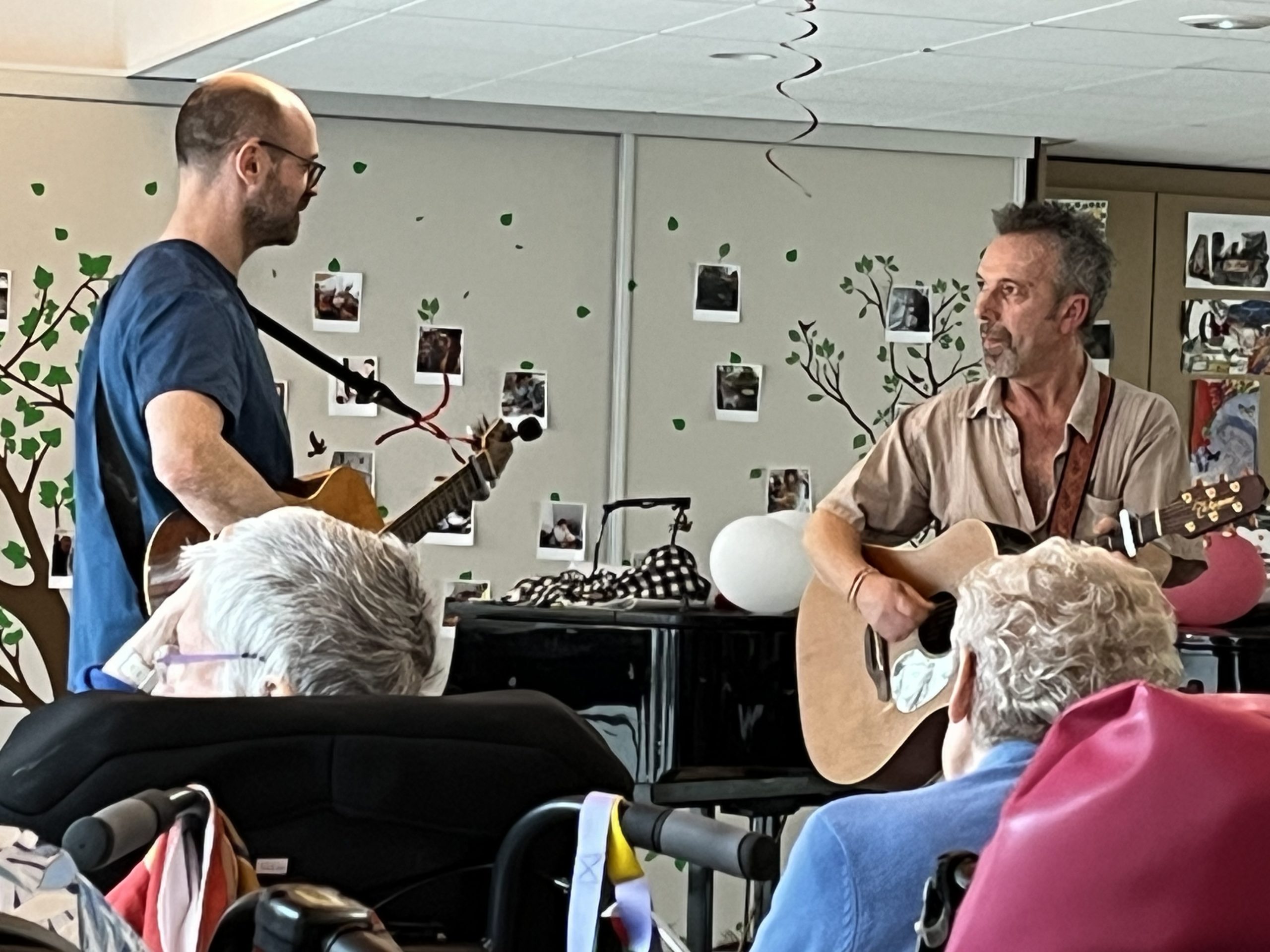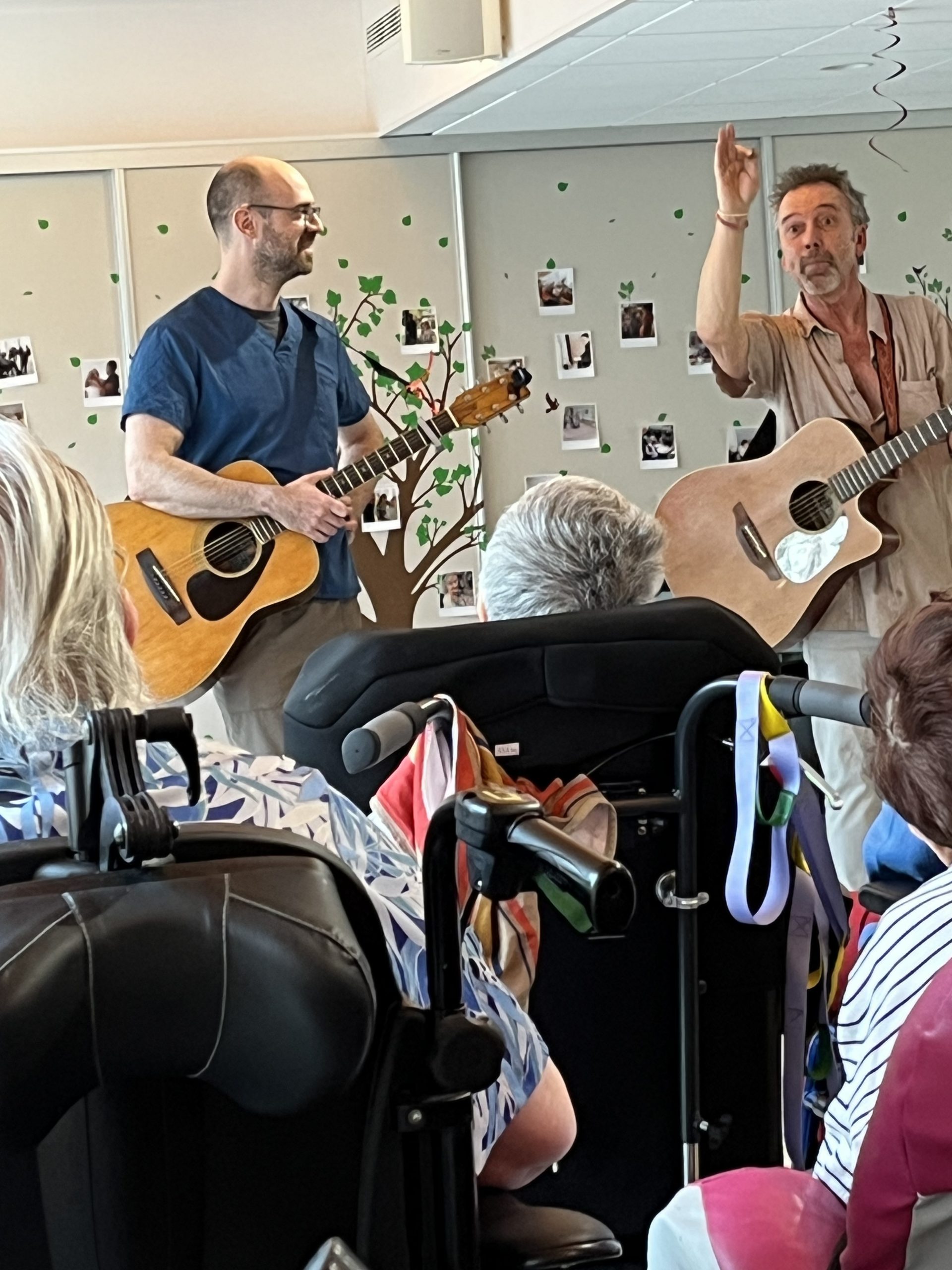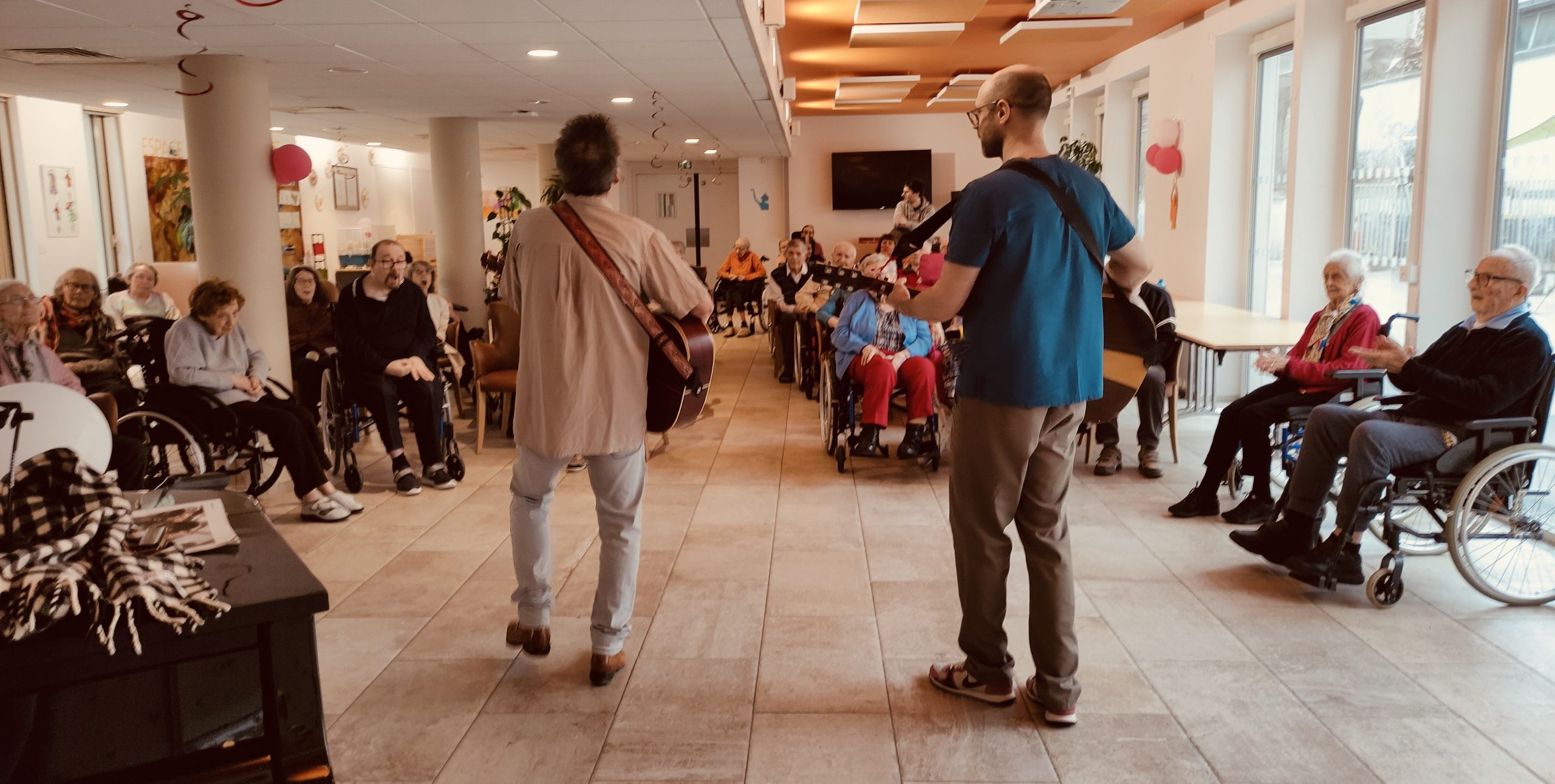 Le mois dernier, Thierry, kiné de la maison, avait amené sa guitare et nous avions joué quelques titres ensemble. Ce qui était très sympa pour tout le monde. Rappel de ce jour là :