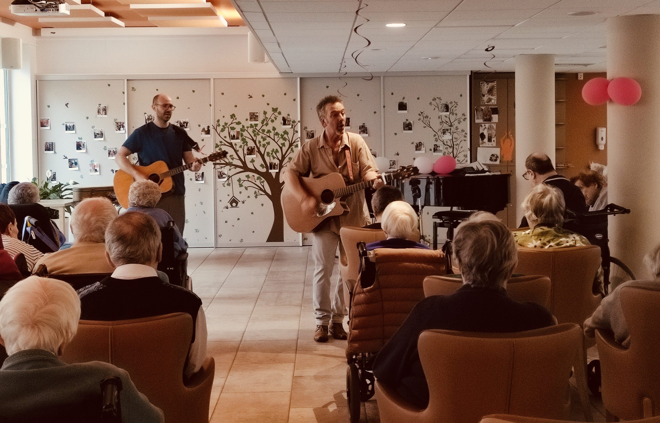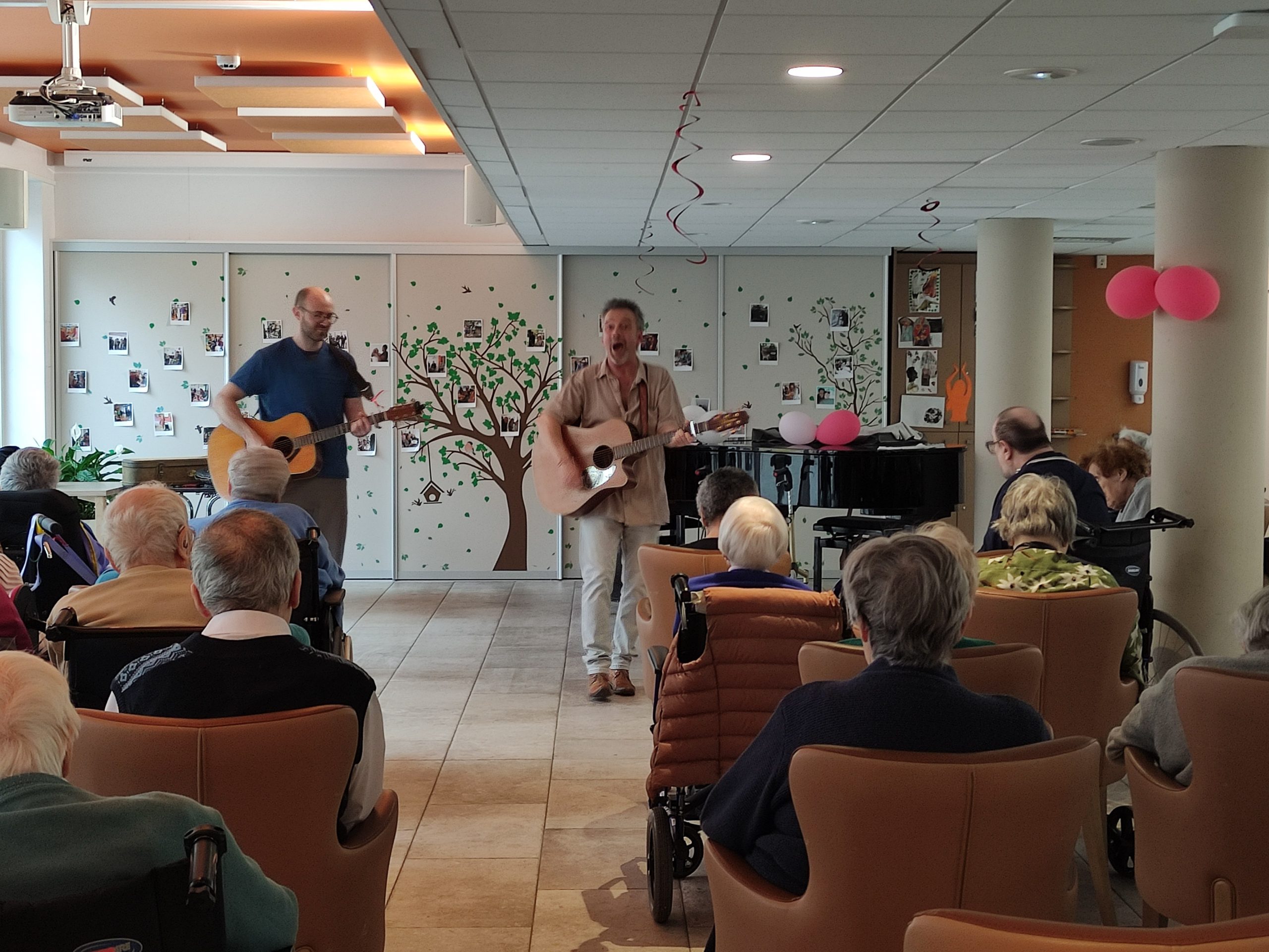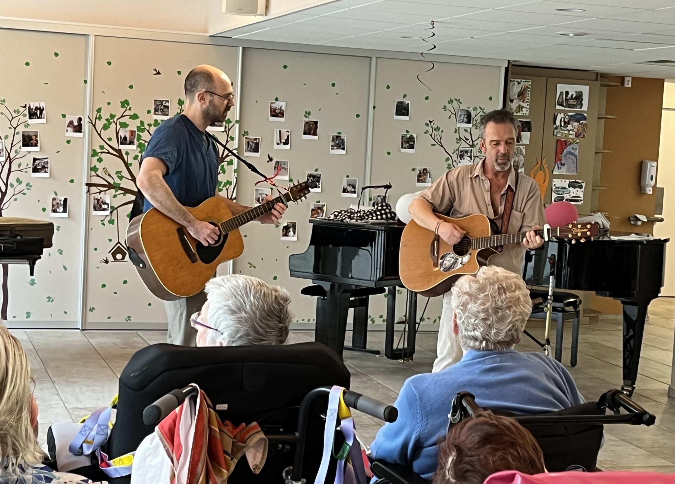 Les autres photos sont d’une dame qui accompagnait un résident (son épouse peut être ? je ne sais pas). Ce résident est un excellent musicien. J’ai eu l’occasion de l’entendre jouer du jazz sur le piano à queue de la maison. C’est nickel! Je ne connais pas son prénom mais à chaque fois il s’installe aux premières loges et il est très attentif à ce que je joue. Il a même chanté pas mal ce mercredi.