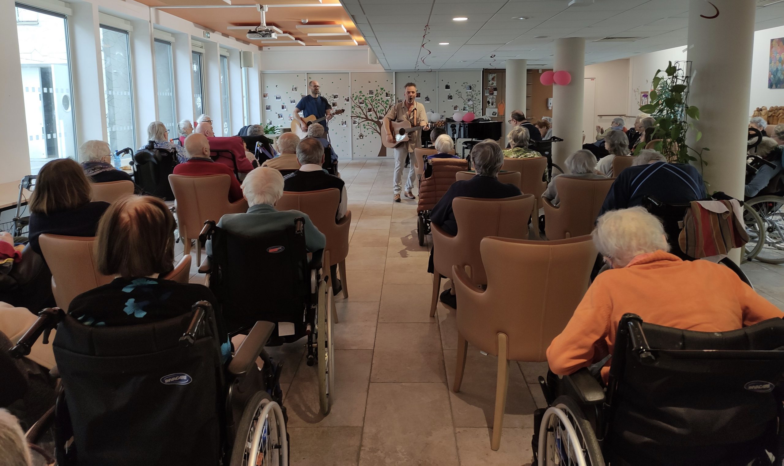 Ensuite, rien que des chansons pour essayer de les faire participer. Des tubes  des années 50, 60, 70. Les résidents de chez Catherine Labouré font toujours beaucoup d’efforts pour chanter haut et fort avec moi. Ils sont volontaires et très bon public. Je les aime beaucoup.
