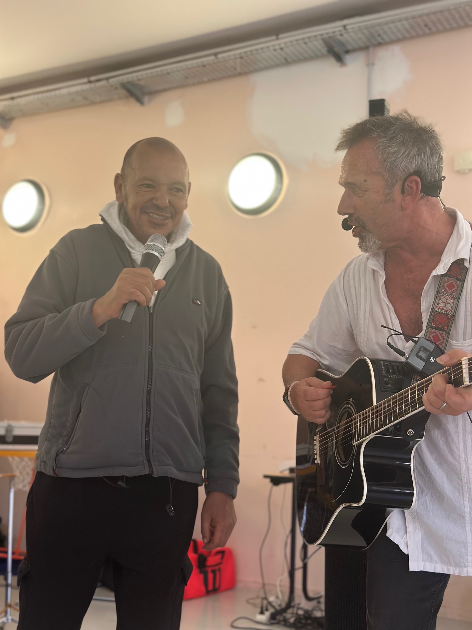 Lahoucine a également tenu à chanter avec moi. Du Johnny bien sûr ! Johnny Hallyday toujours adoré dans les foyers !
